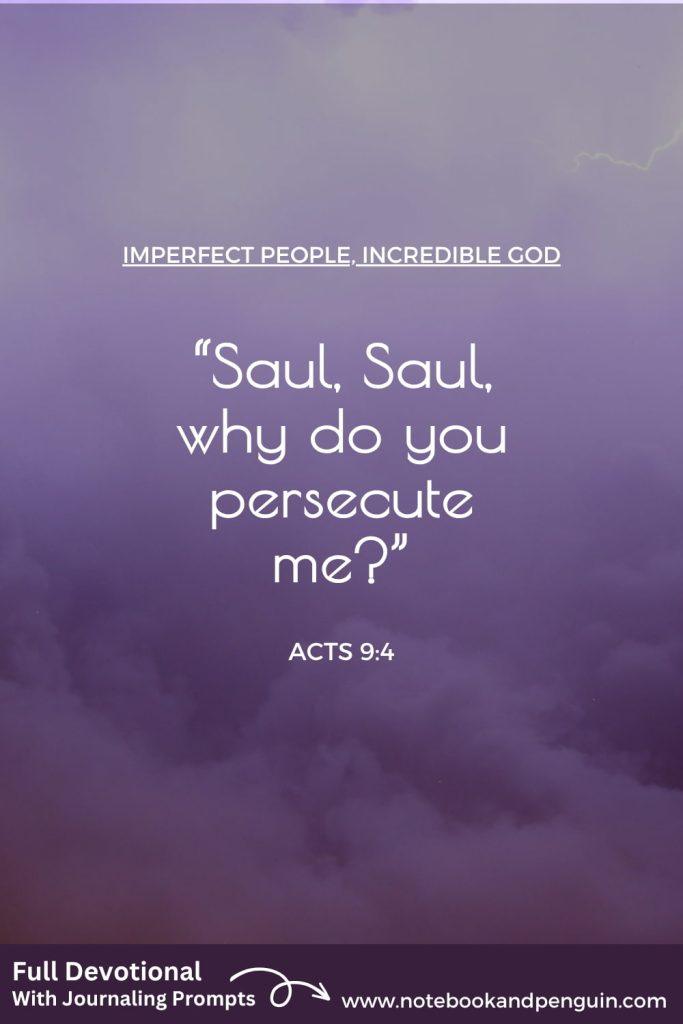 As he neared Damascus on his journey, suddenly a light from heaven flashed around him. He fell to the ground and heard a voice say to him, “Saul, Saul, why do you persecute me?”
