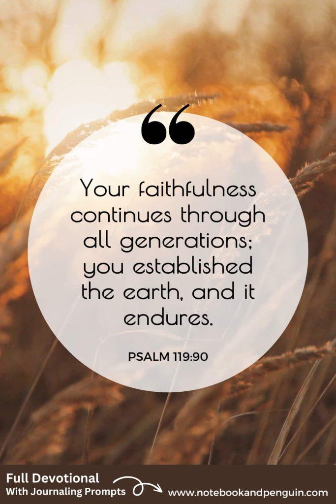 “Your faithfulness continues through all generations; you established the earth, and it endures.”