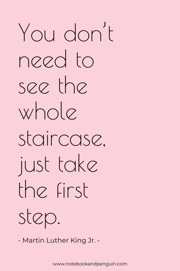 You don’t need to see the whole staircase, just take the first step. – Martin Luther King Jr.