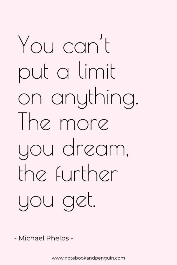 You can’t put a limit on anything. The more you dream, the further you get. – Michael Phelps
