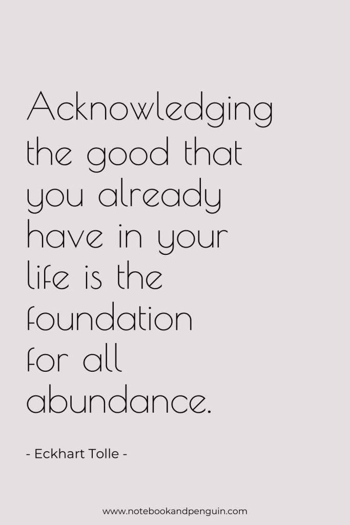 Acknowledging the good that you already have in your life is the foundation for all abundance – Eckhart Tolle
